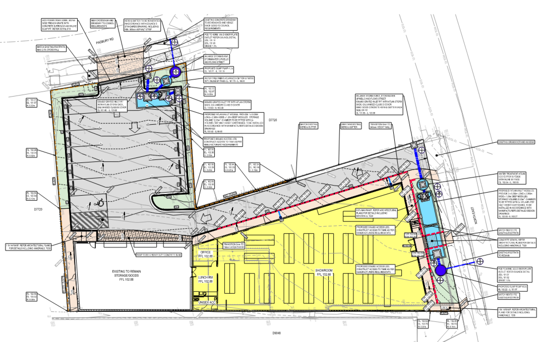 Civil / Stormwater design for the upgrade of a retail car park, including stormwater, pavement, and access improvements.